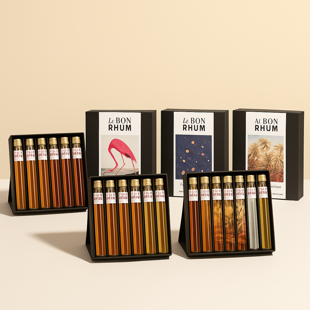 Appréciez le monde du rhum à travers nos coffrets de dégustation à l'unité !