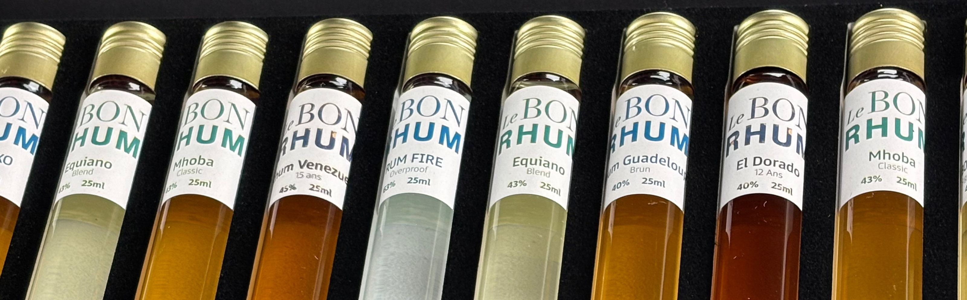 Chez Le Bon Rhum, nous sélectionnons chaque mois des rhums uniques, que vous pouvez recevoir directement chez vous. Nos coffrets mensuels contiennent 6 petits flacons de 25 ml, tous choisis avec soin pour leur qualité et leur authenticité. Chaque coffret est accompagné d’un livret de dégustation pour vous guider dans la découverte de ces saveurs venues du monde entier.