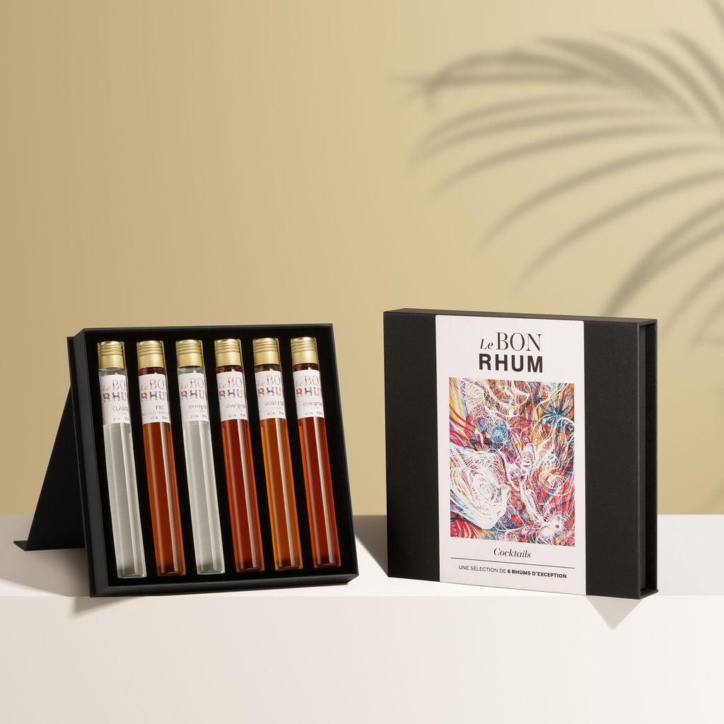 Ce coffret de dégustation comprend plusieurs fioles soigneusement choisies pour obtenir les meilleurs assemblages, ainsi qu’un guide détaillé avec des recettes de cocktails à base de rhum et des informations sur l’histoire du rhum. Vous aurez ainsi tout le nécessaire pour créer, expérimenter et affiner vos mélanges chez vous.
